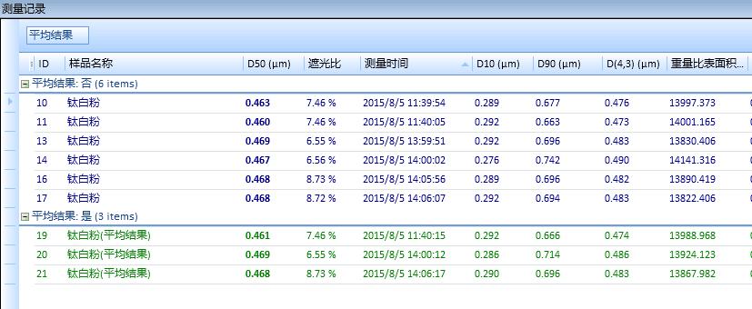 4) 可同時查看多個測試報告結果,進行數據的圖形比對和數值統計分析。支持以日期、特征粒徑或平均結果等多個參數進行分類、排序、篩選功能,并能以表格形式輸出。
